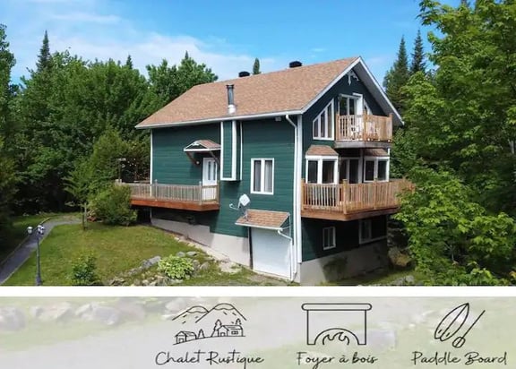 Located in the picturesque countryside, Chalet Colibris is the perfect getaway for nature lovers. Hike through the nearby trails, go fishing in the river, or simply relax in the peaceful surroundings. Book your stay today and experience the beauty of the Laurentian Mountains.